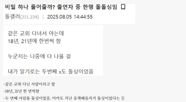 같은 교회에 다니는 지인이 폭로한 것으로