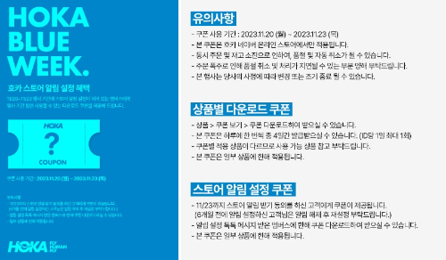 2. 호카 알림 설정하신 고객에 한하여 매일 오전 11시 릴레이 추가 쿠폰 혜택 증정