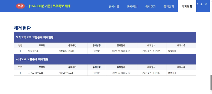 실시간 통제 예정 지역을 바로바로 안내해 주니, 이동 시 불편 없이 확인하시길 바랍니다.
