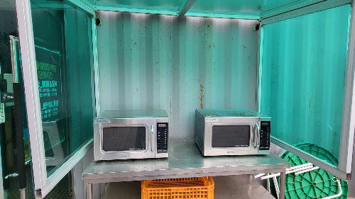 전자렌지도 밖에 비치되어 있어서