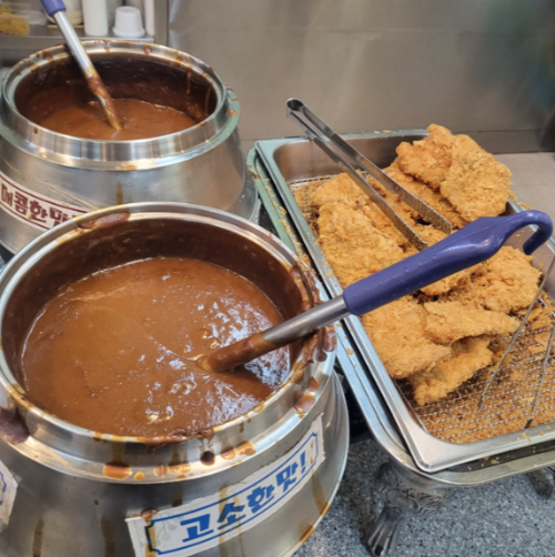 제일 먼저 갓 튀긴 돈까스가 있어요!