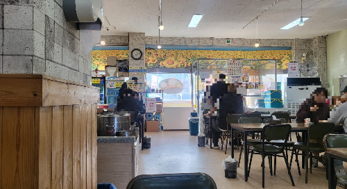 입장하면 긴 테이블과 4인용 테이블이