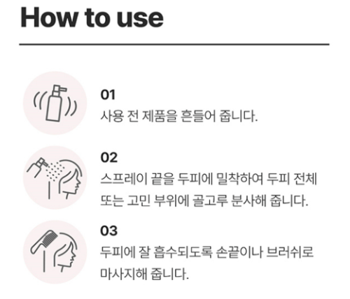 드라이하거나또는 머리 건조 후 두피에 뿌린 뒤