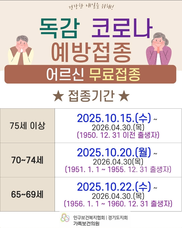 *65세 이상은 무료 접종 가능하고