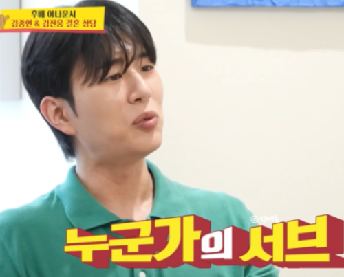 "우리 당" 이라는 표현을 하며 김대호 아나운서가 김진웅의 이름을 새겨 들으며,