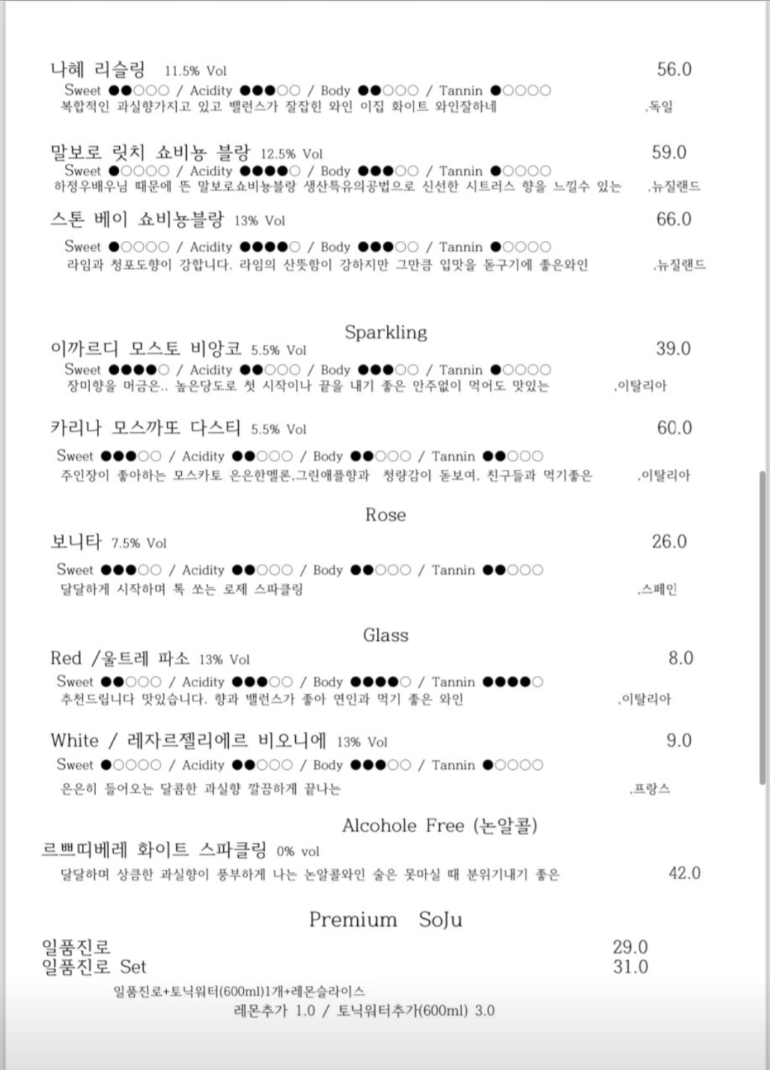 와인 가격도 합리적이고 음식도
